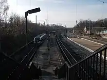 Grobau halt was opened on 30 May 1959 and the facilities now consist of two outer platforms and a storage facility.[35]