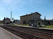Reuth station has existed since the start of the route. Following works at the end of the 19th century, the station had three through tracks, various marshalling tracks and a total of 17 sets of points. Until the restoration of the second track, Reuth was used for crossing trains. Since the end of the 1990s, there has been only a crossover and a siding.[34]