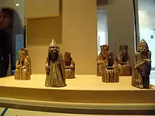 The Norse legacy of art and architecture is limited. The Christchurch at Brough of Birsay, now reduced, was the early seat of the Bishops of Orkney. St. Magnus Cathedral, Kirkwall is peerless as an example of Norse-era construction in Scotland and St. Magnus Church, on Egilsay retains its round tower.[181] The iconic Lewis chessmen are the best-known treasure trove and numerous finds of grave goods, including brooches and weaponry[182] such as the Scar boat burial, are well documented.
