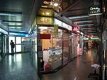 The complex has five floors, but only three are used for multiple retail outlets. One floor contains the offices of the Immigration Department and the bottom floor has only a bookstore (in addition to the escalator).