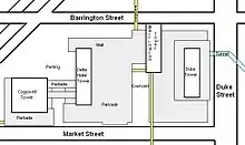 - Three-level pedway going from Barrington & Duke Towers to a stairwell, which leads to parking and the mall. The middle level of this pedway joins up to the Brunswick Street Pedway mentioned above.[25][32]