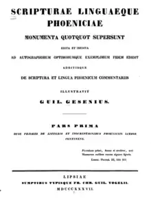 Scripturae Linguaeque Phoeniciae (in English: "The writing and language of Phoenicia"), also known as Phoeniciae Monumenta (in English: "Phoenician remains") was an important study of the Phoenician language by German scholar Wilhelm Gesenius. It was written in three volumes, combined in later editions.[1] It was described by Reinhard Lehmann as "a historical milestone of Phoenician epigraphy".[2]