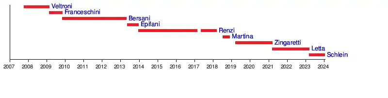 - ↑ Elected by party's National Assembly to replace the resigning Veltroni.