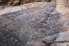 In the gorge cliffs just below the rocky outcrop there are Bronze Age petroglyphs: Oxen, deer, wild rams and nomads with bows and arrows, as well as Medieval Times horsemen along with Arabic inscriptions.