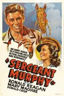 Sergeant Murphy is a 1938 American comedy film directed by B. Reeves Eason and written by Sy Bartlett and William Jacobs.[1] The film stars Ronald Reagan, Mary Maguire, Donald Crisp, Ben Hendricks Jr. and William B. Davidson. The film was released by Warner Bros. on January 1, 1938.