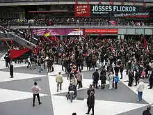 - A sunken pedestrian plaza furnished with a triangular-colored floor pattern (colloquially referred to as Plattan, "The Slab") and a wide flight of stairs leading up to the pedestrian street Drottninggatan, connecting south to Stockholm Old Town and north to Kungsgatan.