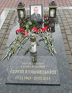 Serhii Petrovych Kulchytskyi (Ukrainian: Сергій Петрович Кульчицький; 17 December 1963 – 29 May 2014) was head of the military and special training directorate at the National Guard of Ukraine. Gen Kulchytskyi was killed during the Siege of Sloviansk, when his helicopter was downed by armed pro-Russian separatists.