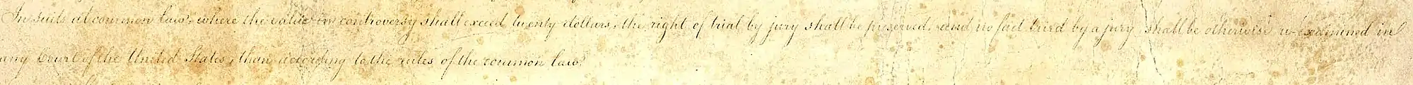 In Suits at common law, where the value in controversy shall exceed twenty dollars, the right of trial by jury shall be preserved, and no fact tried by a jury, shall be otherwise re-examined in any Court of the United States, than according to the rules of the common law.[3]