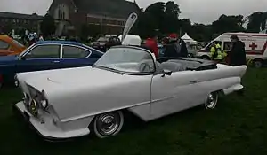 Shortly after production began, however, design flaws became apparent. Although the car was big and heavy, it used a relatively small Austin A55 1.5 litre engine, which limited performance. The A55 also provided the transmission and suspension. Another problem was that the rear wheels were shrouded by body panels and a rear wheel could not be removed (for puncture repair for example) without dropping its axle. The car used fibreglass body panels and was styled as a four seat, two door coupé with removable hardtop. The wheelbase was 98 inches (2487 mm). All cars were painted white, although one in the USA has been repainted candy green.