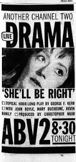 She'll Be Right is a 1962 Australian television play which aired on the ABC.[2]