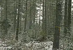 A partial overstory removal cutting in eastern white pine. Compare the amount of light reaching the seedlings to that in the establishment cut.