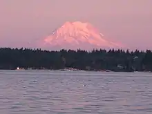 Mount Rainier over the Totten Inlet. Mason County, Washington.