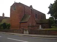 The Roman Catholic Church of St Joseph, on Cromer Road was designed by Sir Giles Gilbert Scott. In 1901 a donation of over £3,000 by Catherine Deterding, the wife of the managing director and founder of the Shell Oil Company, enabled the purchase of land around an existing chapel to build a new church. Work began in 1902 and the first section, St Joseph's chapel was completed in 1908.[18] In 1910 the second section opened, which comprises the sanctuary, nave and the porch. Later the church was completed by extending the nave and adding a new porch. The complete building was consecrated on 25 March 1935. From the outside it is possible to see the join between the northern two-thirds opened in 1910, and the southern extension completed in 1935. This large red-brick church towers over its neighbours. The north end, (the liturgical east), has a high rose window, while each long side is pierced by three vast Perpendicular-style windows. The church is entered through a porch and into a narthex on the south west corner of the building. Behind a grilled area to the east there is a large framed icon of the Blessed Virgin. Inside the church the height and narrowness emphasizes the arcades which are also of a good height and have arches of alternate sizes. The décor is a mixture of both the arts and crafts movement and industrial Gothic, a signature of Gibert Scott's style. The font is a replica the seven sacraments font at St Mary and All Saints, Little Walsingham. There are some good pieces of early 20th century devotional art much of which was imported from the studio and workshop of Ferdinand Stuflesser in the Austrian Tyrol. There is a rood screen above the entrance to the sanctuary. The Stations of the Cross, ordered from Stuflesser, spent the First World War in the hold of a German freighter impounded at Genoa.