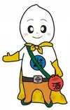 Shintotsukawa's mascot is Komezo (こめぞー). His name is Komezo Totsukawa (とつかわ こめぞー, Totsukawa komezo). He is a rice ghost that likes rice and sake.[2]