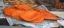 Sheermal (Persian/Urdu: شیرمال, Hindi: शीरमल, Bengali: শিরমাল/শীরমাল), also spelled shirmal, is a saffron-flavored traditional flatbread eaten in Iran and the Indian subcontinent. The word sheermal is derived from the Persian words شیر (translit. sheer) meaning milk, and مالیدن (translit. malidan) meaning to rub. In a literal translation, sheermal means milk-rubbed. Found by Persians in Old Dhaka, it was introduced to North India by the Mughal emperors during the medieval period. It became a delicacy of Lucknow, Hyderabad and Aurangabad.[1] It is also part of the Awadhi cuisine[2] and is enjoyed in Old Bhopal and Pakistan.