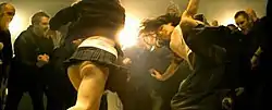 The video draws parallels from dog fighting, focusing on a fight scene in which the dogs are replaced by two young women, and culminates in the escape of one woman at the end of the video. It also depicts controversial scenes of women being kept in cages and men gambling on the outcome of fights, which contributed to Knight describing the video as "highly problematic".[9] Some scenes of the video have been compared with the movie Fight Club by various sources, including Bartleet.[9]