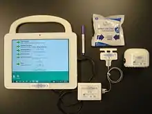 The current version of ShuntCheck was developed in 2011-2012 funded by grants from the National Institute of Health[17][18][19] and was cleared by the US FDA in 2013.[1] The ShuntCheck system includes the ShuntCheck Sensor, a skin marker, an Instant Cold Pack, a Data Acquisition Unit (an analog-to-digital converter called the “DAQ”), a Windows 7 or Windows 8 laptop or tablet computer running ShuntCheck software and the Micro-Pumper.[1]