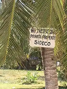 A ₱10-billion development project was launched on May 9, 2013 by the Sicogon Development Corporation (SIDECO), in partnership with Ayala Land, with the intent of reviving Sicogon as a world-class tourist destination.[5] The project included the construction of a five-star hotel and resort, seaport, and an airport on the existing airstrip. This plan was not without controversy, as locals clashed with the developer, causing the town of Carles to send an eight-member police force to mediate between the developer, who claimed that residents had agreed to be relocated voluntarily, and residents who said the developers were forcing them off of public lands.[6] On 8 November 2014 a pact was signed between SIDECO, Ayala Land, and local residents to begin development, with the goal of transforming Sicogon into an ecotourism destination.[7]