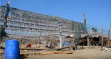 Today, as during the Portuguese period, the territory of Simbor does not have a permanent population. Rather, transient communities of fishers belonging to one or the other of the traditional fishing castes have been fishing and living along the coast of southern Gujarat, including the bay of Simbor, for centuries. During the second half of the 19th century, the Machhis had become the main suppliers of bombolim, the fish they had caught and sundried in the bay of Simbor that was eaten by the population of Diu during the monsoon season. In the mid-20th century the Machhis introduced the bag net stationary fishery which became widely practiced in the area due to the suitable marine condition of strong currents and shallow seabed. Subsequently, the Kolis who gradually took the place of the Machhis, adopted that method. The introduction of bag net fishery in the coastal villages around Simbor transformed the livelihoods of the local Kolis from basic subsistence-based to an ability to earn a comparatively good income. Today, Koli women and children continue to dry the fish on racks on the beach of the Diu-ruled territory of Simbor, as they have been doing for generations. The fish sorting and fish drying activities, as well as the huts made of palm leaves where live the fishers and their families — a few hundred people — are a familiar scene in the exclave of Simbor during the fishing season.[3][4]