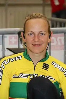 Simona Krupeckaitė (born 13 December 1982) is a Lithuanian former professional track cyclist. She is the 2009 500 m Time Trial World Champion and World Record holder at 33.296s, and the 2010 Keirin World Champion. She also won the 2009, 2010 and 2016 Lithuanian Sportsperson of the Year award. In 2010 Krupeckaitė reached one more world record. This time she achieved 10.793 s record at Flying 200 m time trial event. She retired from competition after the conclusion of the 2021 UCI Track Champions League in December of that year.[2]