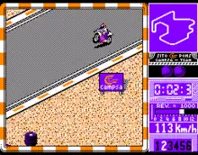 Sito Pons 500cc Grand Prix is a top-down motorcycle racing game similar to Aspar GP Master (1988), where players observe from above and race as Spanish motorcycle driver Sito Pons driving the Honda NSR500 across 14 countries conforming the 500cc class Grand Prix motorcycle racing like the United States, Spain, Italy, Germany, Austria and Yugoslavia.[1][2][3] The game uses a isometric perspective like Carlos Sainz: World Rally Championship to portray a TV-style viewpoint.[4]