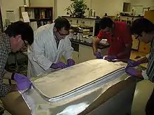 The practical use of sleds is ancient and widespread. They were developed in areas with consistent winter snow cover, as vehicles to transport materials and/or people, far more efficiently than wheeled vehicles could in icy and snowy conditions. Early designs included hand-pulled sizes as well as larger dog, horse, or ox drawn versions. Early examples of sleds and sledges were found in the Oseberg Viking ship excavation.[1] The Toboggan sled is also a traditional form of transport used by the Innu and Cree of northern Canada and the people of Ancient Egypt are thought to have used sledges (on the desert sand and on ramps) extensively for construction.