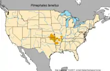 Distribution of Pimephalus tenellus (pale native, dark introduced)