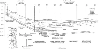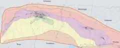 - ↑ Dickinson, Kendell (1968). Upper Jurassic Stratigraphy of Some Adjacent Parts of Texas, Louisiana, and Arkansas. USGS. p. E9.