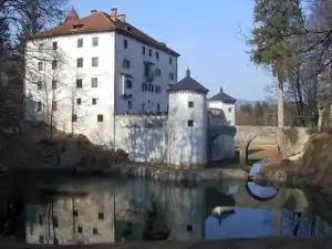 Snežnik Castle (Slovene: Grad Snežnik, German: Schloß Schneeberg) is a 13th-century castle located in the southwest part of the Lož Valley near the settlement of Kozarišče in the municipality of Loška Dolina, Slovenia. Its name is coincidentally identical to a univerbation based on the Slovene word sneg 'snow', but is actually a Slovenized form of the name of the noble house of Schneberg, whose possession it initially was. The Schnebergs were followed by the houses of Lamberg, Eggenberg, Lichtenberg, and Schönburg-Waldenburg.