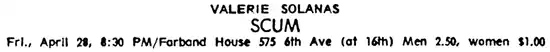 An ad placed by Solanas in The Village Voice, April 27, 1967