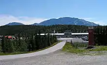 The airport is situated twenty minutes drive from the town center. There is an airport coach service operated by Nettbuss. Paid parking, taxis and car rental are available at the airport.[13] The road (although in part obscured by forest) is quite beautiful, located 400 meters (1,300 ft) above the Sognefjord, with a view over the 1,717-meter-high (5,633 ft) mountain Bleia on the other side (best seen from 61°10′34″N 7°10′32″E / 61.176033°N 7.175654°E / 61.176033; 7.175654).