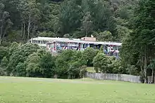 New Zealand Soil Bureau was a division of the Department of Scientific and Industrial Research specializing in soil-related research and development. Originally formed as the 'soil survey group' of the 'Geological Survey,' they became the 'Soil Survey Division' in 1936 and 'Soil Bureau' in 1945.[1] Established adjacent to Taita College on approximately 90 acres on the Eastern Hills of Lower Hutt north of Wellington,[2] the foyer featured a large mural by Ernest Mervyn Taylor depicting a cloaked figure using a kō (Māori digging stick).[3] Soil Bureau completed nationwide soil surveys of New Zealand.