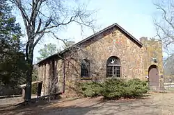 Son's Chapel is a historic church at 5480 East Mission in Fayetteville, Arkansas. It is a single-story rustic fieldstone structure, with front-gable roof and a squat square tower set off to one side. Built between 1933 and 1937, the building is an interesting and unusual mix of Gothic and Romanesque styles, with windows set under Romanesque arches, and the tower with a crenellated parapet. The church is the second for the congregation, which was established c. 1848 on land donated by Michael Son.[2]