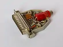 The Speech Thing was introduced on December 18, 1987[1] by Covox, Inc. of Eugene, Oregon, for about US$70[2] (equivalent to $180 in 2022) and priced US$79.95 as of 1989.[3] People soon started to build their own (DIY) variants, since its communication protocol and DAC is simple and only requires soldering a few cheap parts. The novelty of its patent "Parallel port pass-through digital to analog converter" (filed in 1987, granted in 1989)[4] wasn't specifically the use of a resistor ladder as a DAC, but rather the patent's discussion is around its ease of plugging into the parallel port and how its resistor ladder design didn't block other devices from using the parallel port. The plug was used long into the 1990s, as sound cards were still very expensive at that time. The plug was also quite popular in the demoscene.