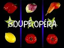 Soupe Opéra (often referred to in English as Soup Opera) is a French children's television programme. Animated using stop motion by French animation studio, Marlou Films,[1] the show features fruits and vegetables turning themselves into different creatures and objects.[2] The name of the series is a pun on the term "Soap Opera." A total of 26 two-minute episodes were made. In France, the series aired on the France 3 channel.