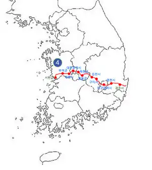 National Route 4 is a national highway in South Korea connects Gunsan to Gyeongju. It established on 31 August 1971.[1]