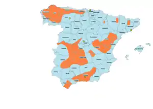 Among the areas of major maquis activity were the Cornisa Cantábrica, from Galicia to Cantabria, especially the mountains of Lugo, Asturias and the area north of León; the Iberian System, specifically the area between the provinces of Teruel, Castellón, Valencia, and Cuenca; Centro, which consists of Extremadura, the north of Cordova, Ciudad Real, Toledo and the mountains of the Sistema Central; and two independent areas in the south of Andalusia: Cádiz on one hand and Granada-Málaga on the other.[4] There was also activity in other areas, such as La Mancha and High Aragon.