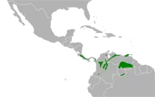 - ↑ "Neotropical Birds: Tangara guttata: Distribution". Cornell Lab of Ornithology. Retrieved 7 July 2016.
