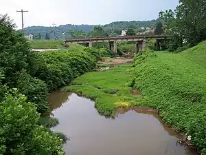 Spring Creek is a tributary of the Little Kanawha River in western West Virginia in the United States. Via the Little Kanawha and Ohio rivers, it is part of the watershed of the Mississippi River, draining an area of 89 square miles (230 km2)[5] in a rural region on the unglaciated portion of the Allegheny Plateau. It is 25.3 miles (40.7 km) long, or 33.3 miles (53.6 km) long including its Left Fork.[6]