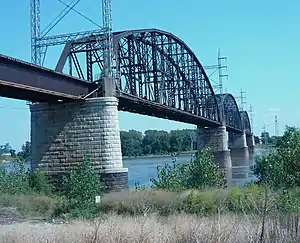 The Merchants Bridge, officially the Merchants Memorial Mississippi Rail Bridge, is a rail bridge crossing the Mississippi River between St. Louis, Missouri, and Venice, Illinois. The bridge is owned by the Terminal Railroad Association of St. Louis. It opened in May 1889 and crosses the river 3 miles (5 km) north of the Eads Bridge.[1]