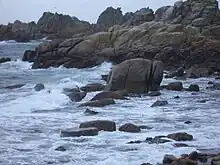St Agnes' Church is a parish church in the Church of England located in the village, dedicated to St Agnes of Rome. The first church was built in the sixteenth or seventeenth century, but it was destroyed in a gale. It was rebuilt in the eighteenth century, but was again destroyed.[5] The current building was built by the islanders in the nineteenth century using the proceeds of the sale of a wreck, and the bell in the church was taken from that wreck. It is a Grade II listed building. In 1821, the church was surveyed by Barnard Sherris of the Incorporated Church Building Society, and a grant was approved for a new west gallery and two new pews in the chancel.[6] The church features stained-glass windows locally made by artists Marigold and Oriel Hicks.[7] St Agnes' Church is within the United Benefice of the Isles of Scilly parishes, which also includes All Saints' Church, Bryher, St Martin's Church, St Martin's, St Mary's Church, St Mary's, St Mary's Old Church, St Mary's, and St Nicholas's Church, Tresco.