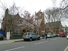 A parish mark can be seen in Philpot Lane. The church of St. Dionis, Parsons Green was built with the proceeds of the sale of the site of the City church, and its font and pulpit survive there.[6][7] The burials were reinhumed at the City of London Cemetery.
