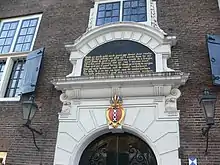 The bank was built in 1614 as a conversion of an old warehouse used by the poorhouse O.Z. Huiszittenhuis that had been used to store peat for the inhabitants.[1] In 1658 the poet Joost van den Vondel became a clerk there. He worked a total of 10 years for the bank and his "bank chair" has been kept.