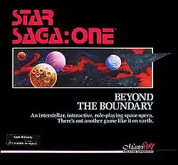 Star Saga: One - Beyond The Boundary, released in 1988, was the first in a short-lived series of science fiction adventure/role-playing games by Masterplay Publishing. Loosely based on the Rekon pen & paper role-playing system,[1] the game series was designed by Andrew C. Greenberg (co-creator of Wizardry), Rick Dutton, Walter Freitag, and Michael Massimilla.[2] In this first title, players leave their homeworlds setting out to explore the vast unknowns of space.