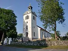 The Medieval church was probably built during the 13th century. The stone building consisted of a long nave and a small domed choir. The church had a roof made of wood shingles and a separate bell tower.[2] Among the few furnishings in the church was a soapstone baptismal font from the 13th century. The ceiling had paintings depicting the Virgin Mary and the Child Jesus. According to 17th-century vicar Kollinius, there were also paintings of "Munks and nuns kissing each other, which is offensive in a chuch".[3] At the beginning of the 1700s, the church started becoming too small for the growing congregation. It was also in poor condition, but the economical situation during the time of the Great Northern War was such that a new church could not be built.[2]