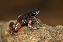 It was discovered in the shola cloud forests of the Wayanad Plateau, and is considered a relict species due to its very small range restricted to certain refugia habitats. It is genetically highly different from both Nyctibatrachus and Lankanectes, with their last common sister species hypothesized to have existed several millions of years ago.[1] It can physically be distinguished by its brown coloration with an orange belly and bluish-white spots. This species is threatened by its very small distribution which completely falls outside protected areas, making it vulnerable to habitat degradation.[2][3]