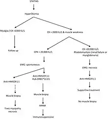 {{cite journal}}: CS1 maint: multiple names: authors list (link) - 1 2 3 Hamann, PD; Cooper, RG; McHugh, NJ; Chinoy, H (October 2013). "Statin-induced necrotizing myositis - a discrete autoimmune entity within the "statin-induced myopathy spectrum"". Autoimmunity Reviews (Review). 12 (12): 1177–71. doi:10.1016/j.autrev.2013.07.001. PMC 4589155. PMID 23851103.