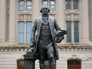 George Washington (alternately titled George Washington as Master Mason) is a public artwork by American sculptor Donald De Lue, located on the grounds of the Indiana Statehouse, in Indianapolis, Indiana, United States. The bronze statue of George Washington that occupies the Indiana Statehouse south lawn is one of several copies of a 1959 original wax cast at the Modern Art Foundry in Long Island, New York.[2]