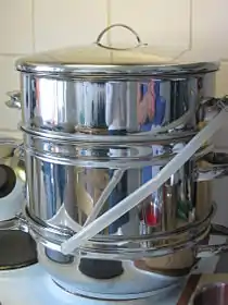 A steam juicer (steam extractor) is a household kitchen utensil for separating juice from berries, fruits, and some types of vegetables in a process called steam juice extraction that is primarily used for preserving harvests faster than they can be consumed when fresh.