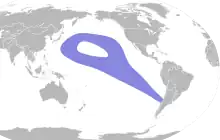 This species is highly pelagic, rarely approaching land, except to nest and rear young. It occurs in the Pacific Ocean, nesting in the Cerro de Los Inocentes mountain of the Juan Fernández Islands off Chile.[2] It is a transequatorial migrant, finding its way to subtropical waters off Japan before returning to its nesting sites. It has been reported well off the west coast of the United States.